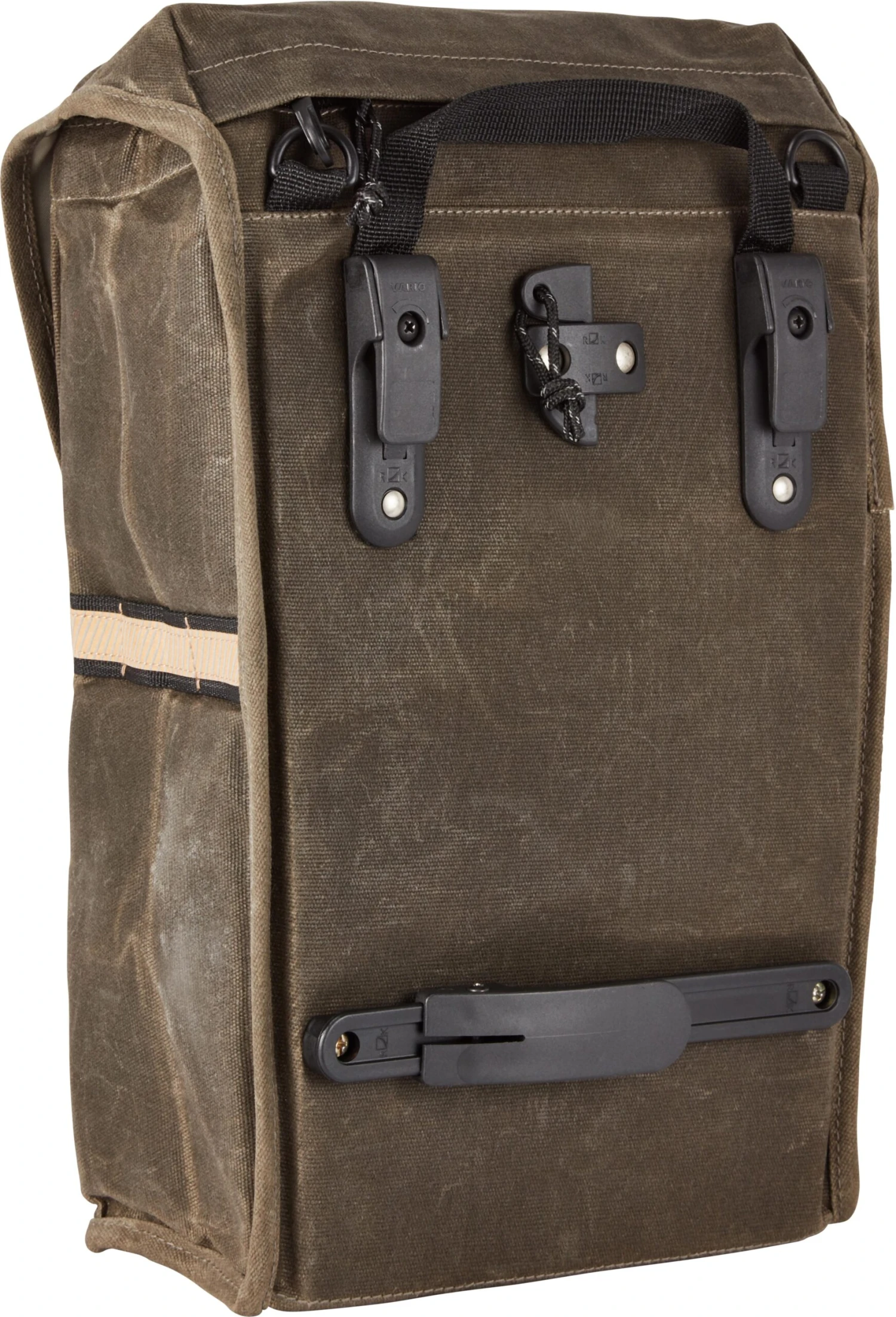 This is a smaller version of our larger Heritage Pannier crafted from the same 12oz waxed canvas and high quality Rixen Kaul Vario fittings. It also has the same blend of classic style with a modern design with a wide range of features as the larger pannier but is great mounted on a rear rack for commuting or moved to a front rack with the larger pair at the rear when the thrill of adventure calls.