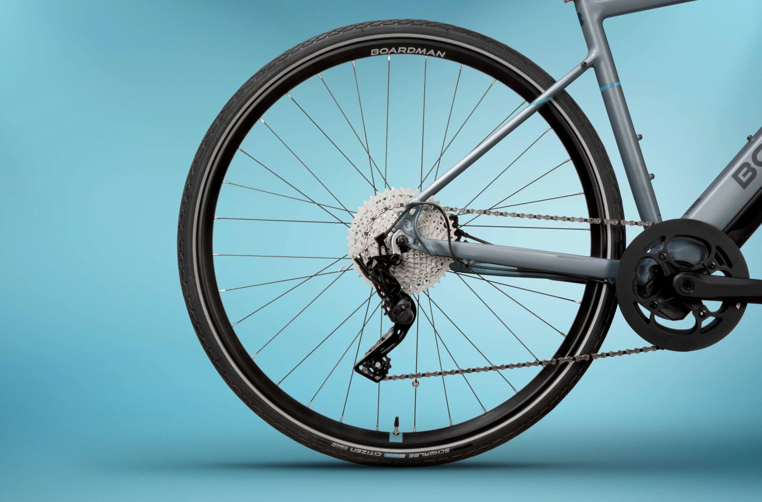Weighing in at just 4.6kg for the whole system, the Fazua Evation system keeps the Boardman HYB-E and ADV-E e-bikes lightweight and practical to live with.