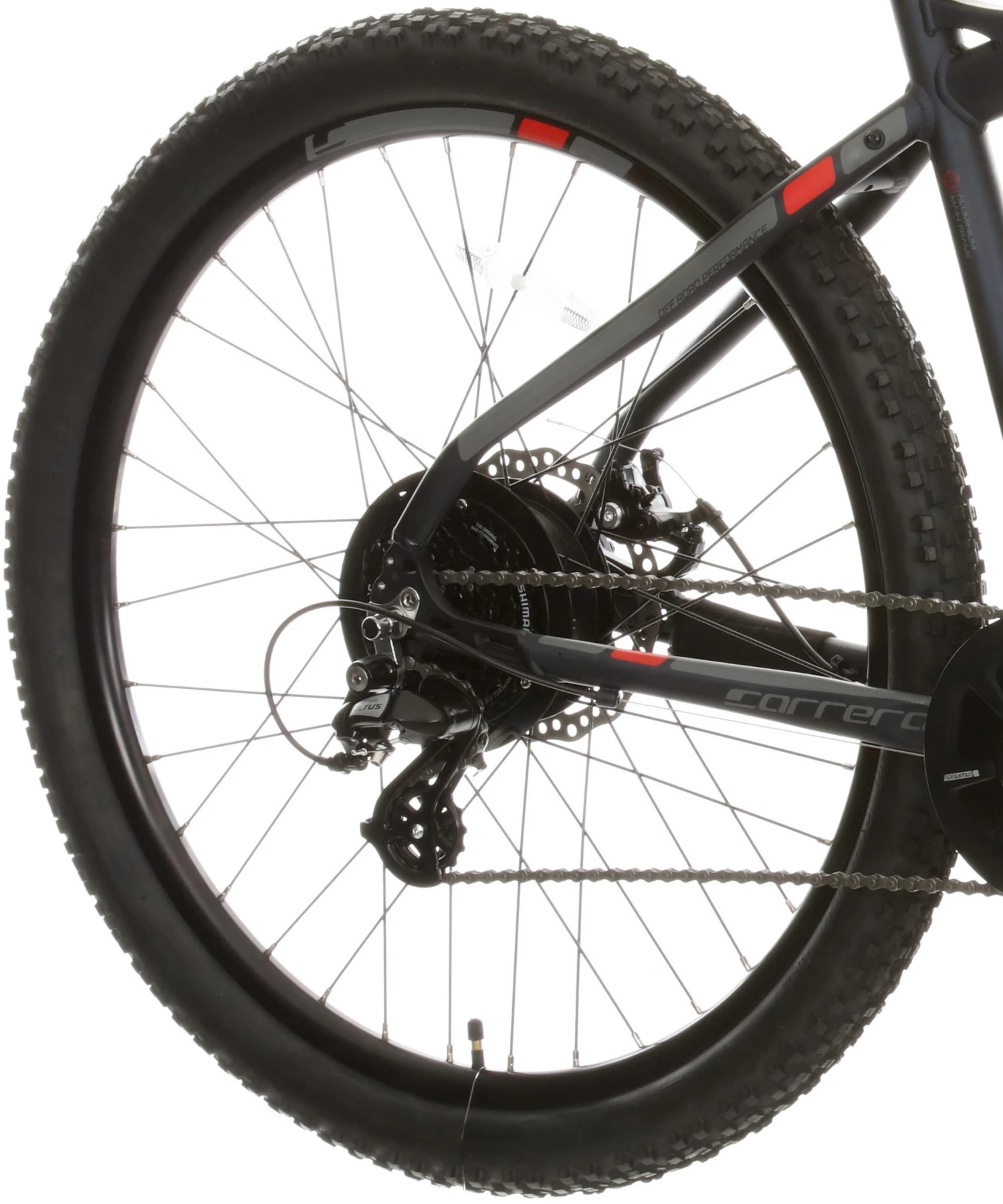 Alongside these comfort upgrades the Carrera Vengeance-E comes equipped with the Kenda K1027, an entry level do it all MTB tyre. It features a simple tread pattern for grip on mild trails and reduced drag when rolling on the road to help keep you moving swiftly.