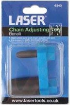 Rear wheel axle and chain adjustment tool for setting the correct chain tension and adjustment without marring or damage to the hub.