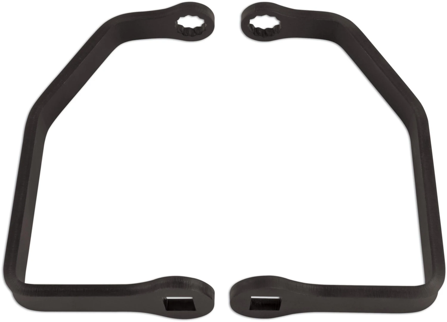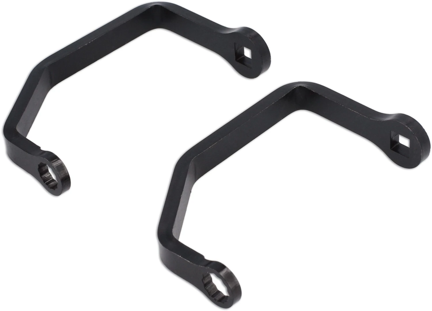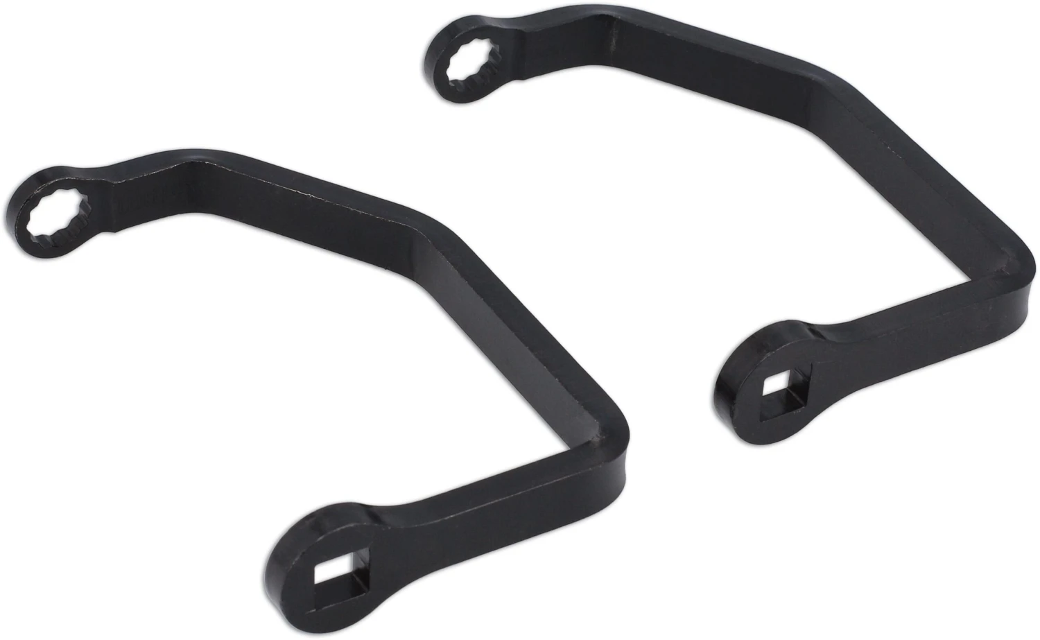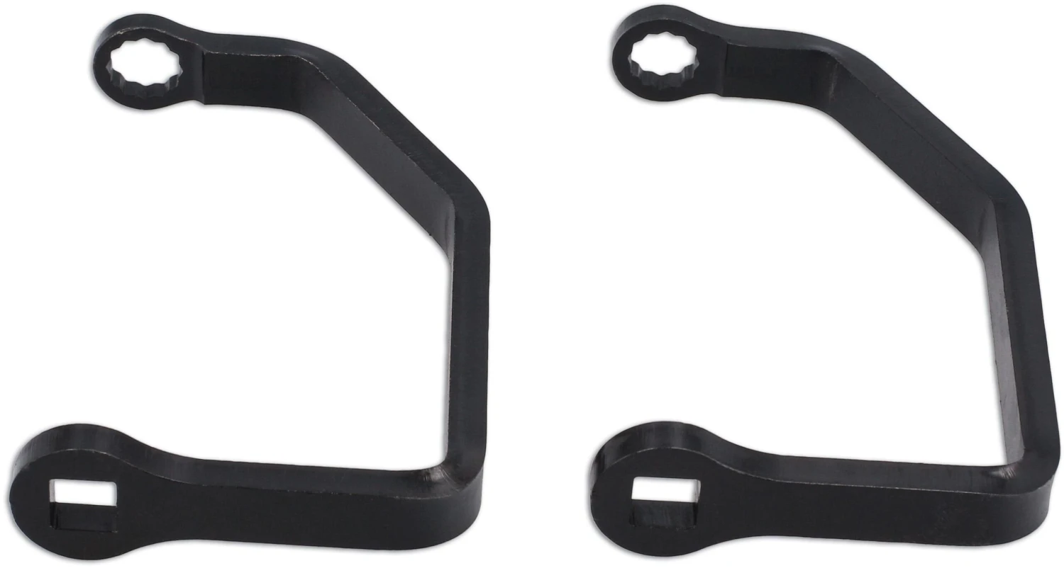 A pair of crows foot wrenches designed to fit Ducati cylinder head nuts. Applications are extensive with M14 being used on post 2005 machines and M15 used on 2002 to 2005 machines.