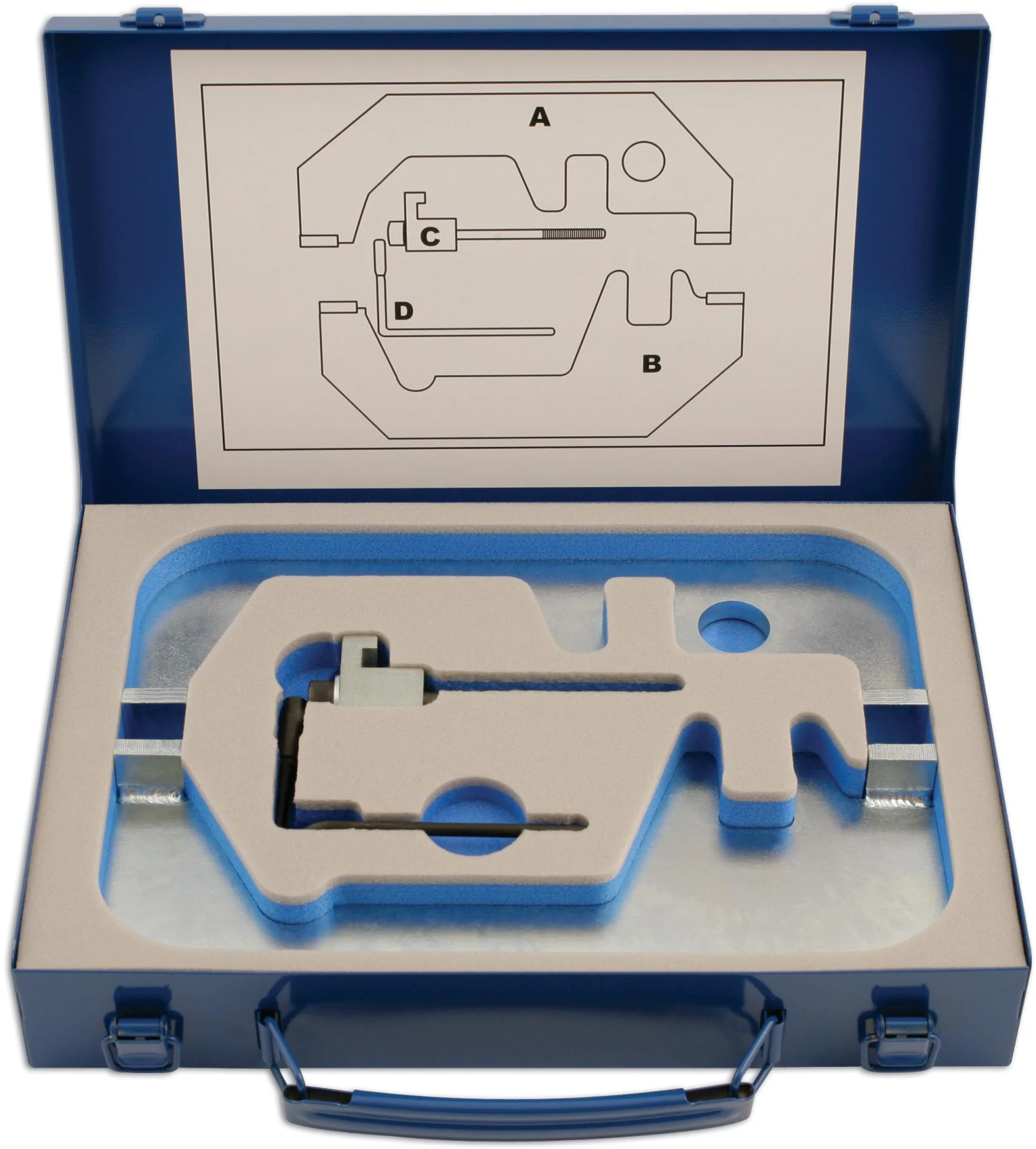 - Using our own innovative design, this kit holds the tools to lock and hold the camshaft & crankshaft securely in their correct timing positions.