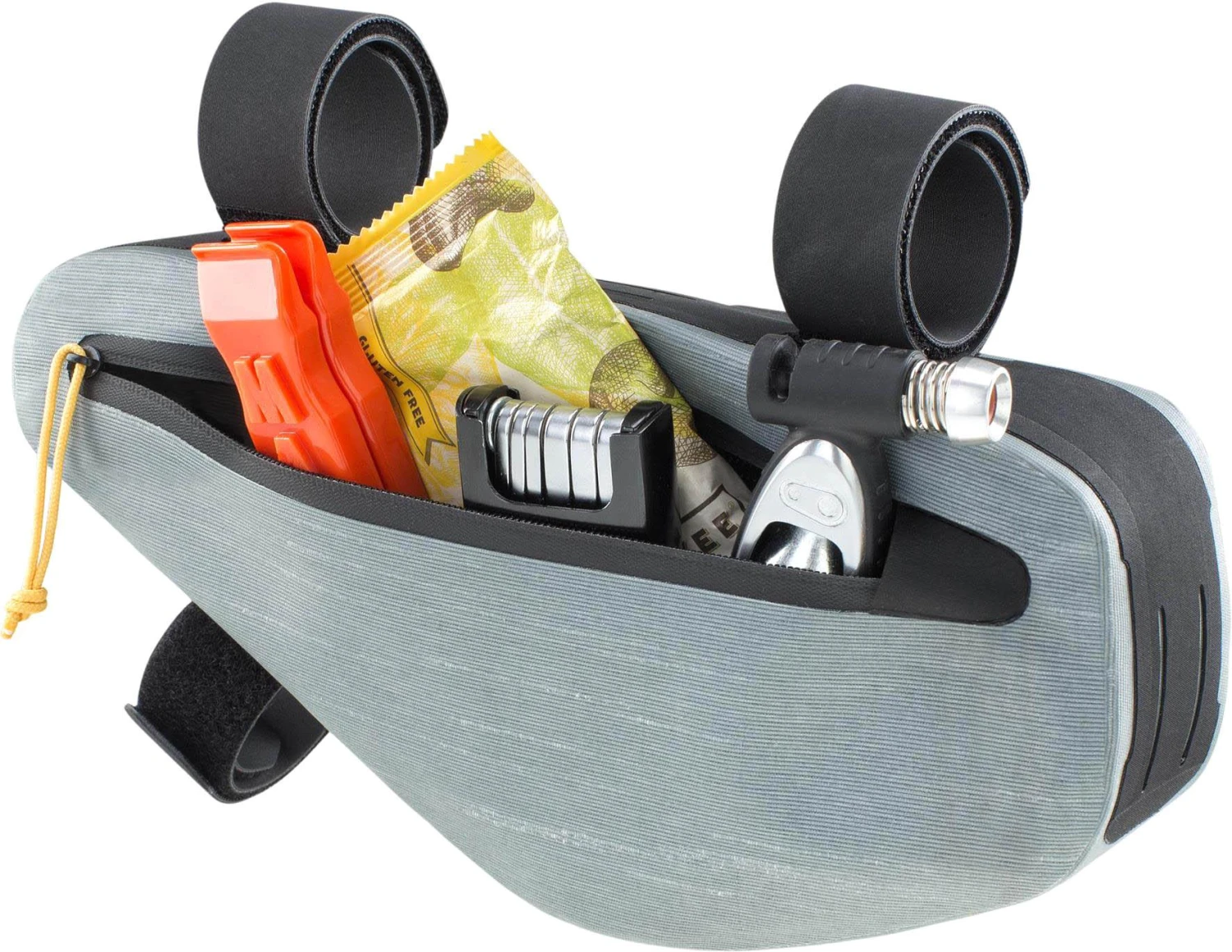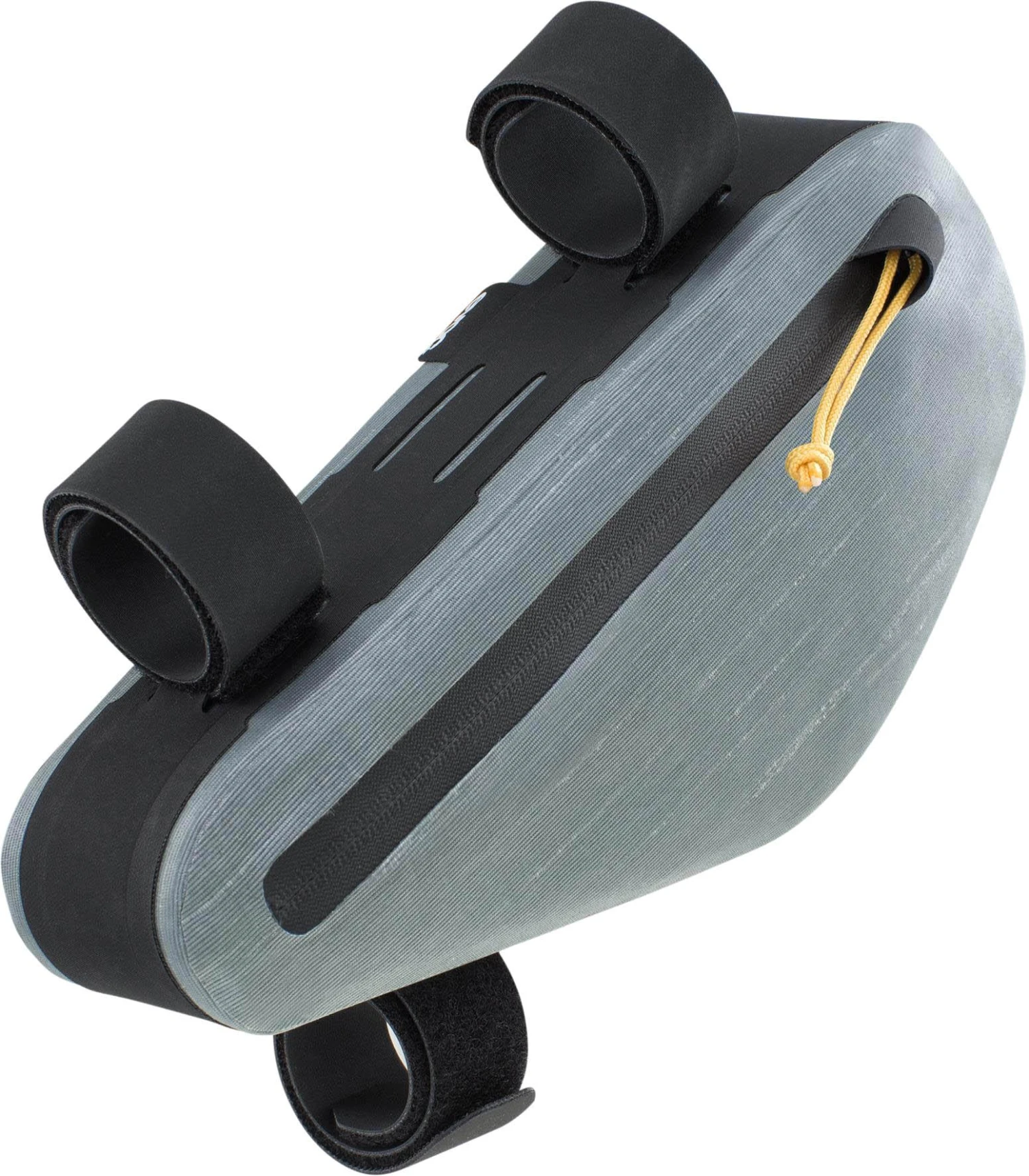 With the EVOC Multi Frame Pack WP, the name says it all really. The smartly cut, waterproof frame bag is super easy to mount to all kinds of frame designs. No matter if you prefer gravel, mountain or road biking, this compact bag will let you carry tools, inner tubes, etc. within easy reach while perfectly protected from dirt and water. The velcro fastening straps can be cut to size and the multiple mounting options enable you to secure it virtually anywhere on your frame either vertically or horizontally; transparent frame-protection strips are included.