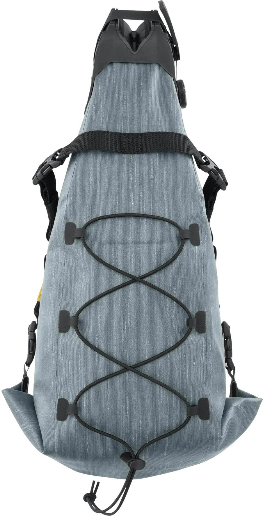 Regardless of whether you prefer to ride your road bike, gravel bike or mountain bike: The easy-to-mount saddle bag offers extra storage space and thanks to the innovative quick-fix system with BOA® Fit System, it is not only mounted on any seat post in a flash – it also offers uncompromising and therefore worry-free grip on rough trails or cobblestones. The bag is just as carefree when it comes to handling. Its material and welded seams make it absolutely waterproof. It is also robust, dirt-repellent and abrasion-resistant. The large, roll-up opening allows quick access to the contents and additional equipment can be attached to the outside with elastic cords. The EVOC Seat Pack Boa WP saddle bag is available in four different sizes: with 6 or 8 litres of packing volume for day trips and micro-adventures and with 12 or 16 litres for multi-day tours and expeditions.