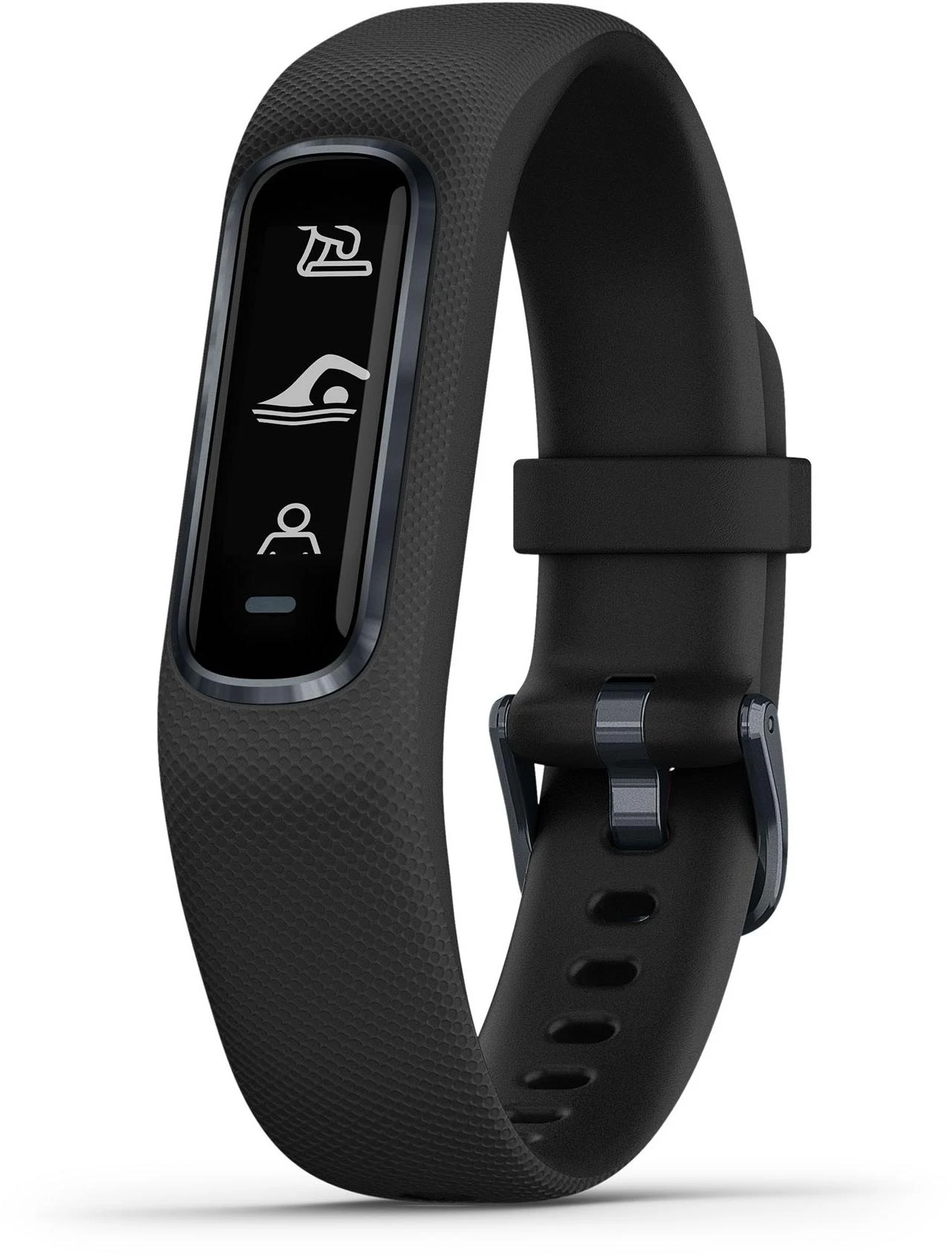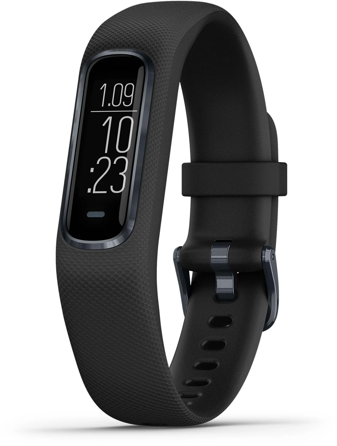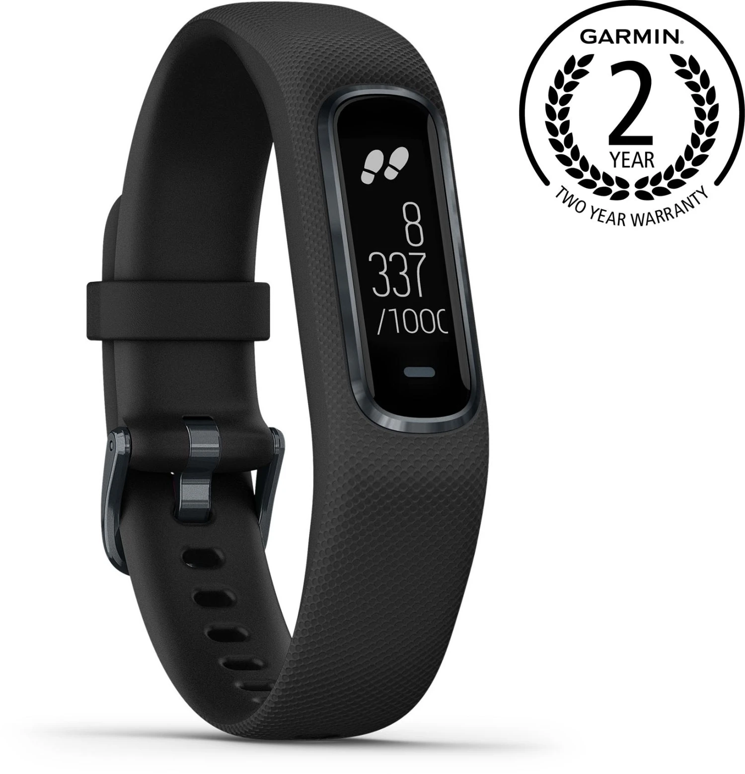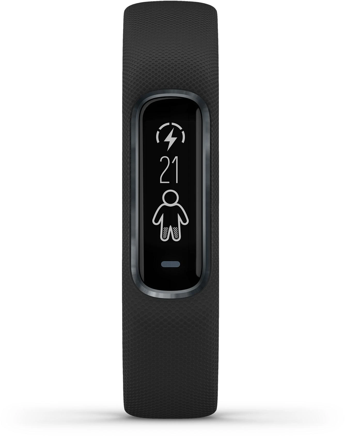 Enhance your fitness with the Garmin Vivosmart 4 Activity Tracker – Black. Loaded with features, this slim and smart wristband tracks your daily activity, as well as your sleep stages all night. The Garmin Vivosmart 4 Activity Tracker monitors heart rate at the wrist and includes the helpful tools – all-day stress tracking, a relaxation breathing timer, VO2 max, and activity timers for walks, runs, strength training, pool swims and more. The wrist-based Pulse Ox sensor lets you check blood oxygen saturation anytime during the day, or you can turn it on while you sleep. Smart notifications keep you connected, and up to 7 days of battery life keep you going strong. Body Battery energy monitoring helps you know when you’re ready to be active, or when you may need to rest. Safe for the pool or shower. Featuring fashionable design with stylish metal accents and a bright, easy-to-read display.