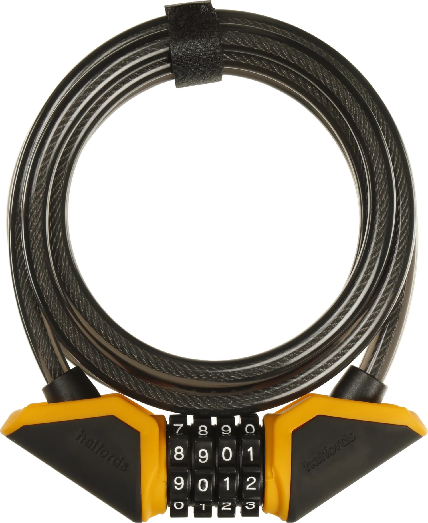The Halfords 185cm Cable Lock – Combination is recommended for use with a secondary lock. Ensure you are securing your bike to a fixed object in a well lit location, making sure that any accessories or quick release wheels are also locked up.