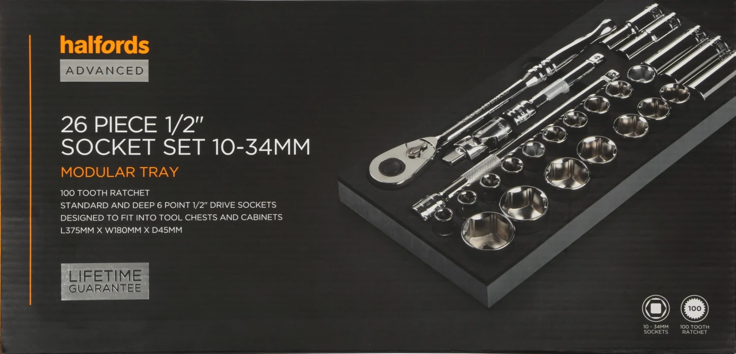 Halfords Advanced 26 Piece 1/2″ Socket Set Modular Tray