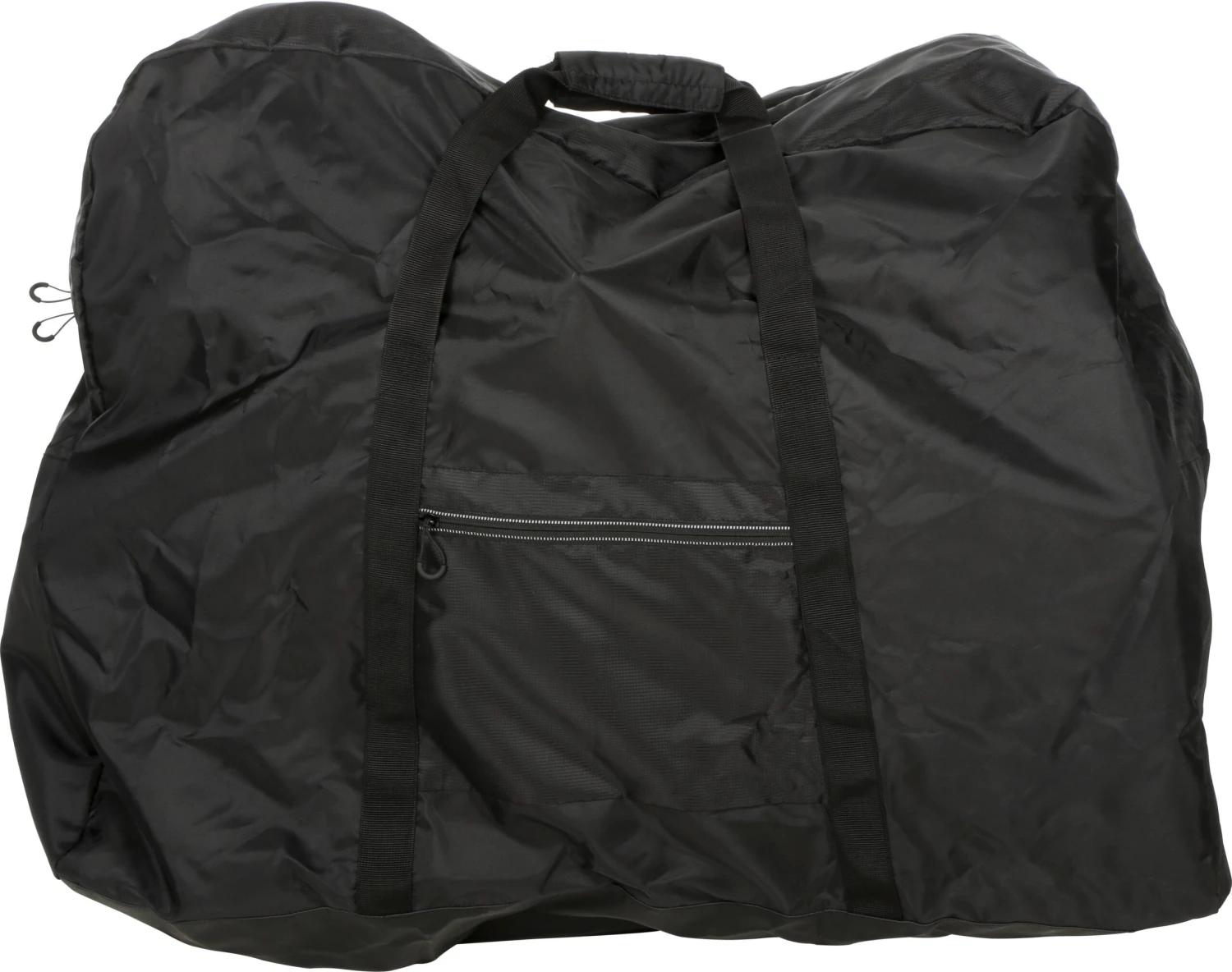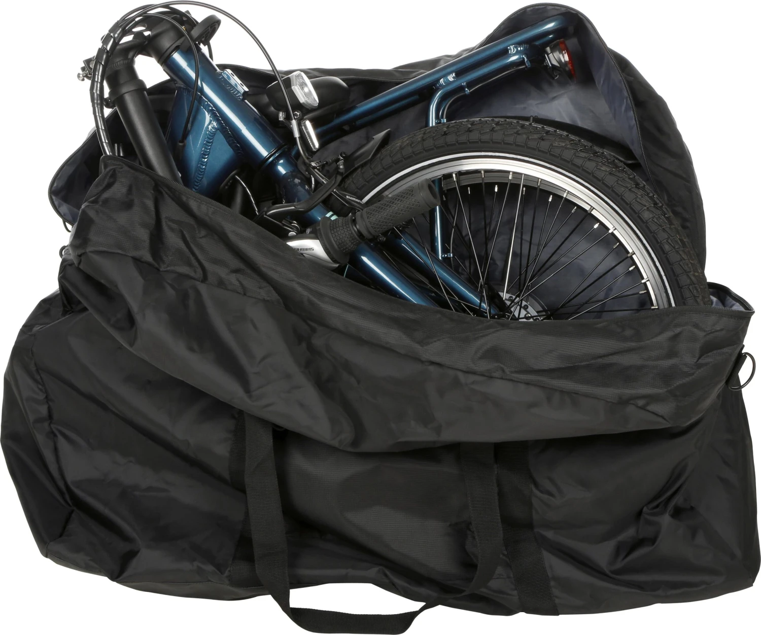 The Halfords Folding Bike Bag is an extremely convenient way of transporting your folding bike when needed. Made from durable ripstop nylon, it's both water and oil resistant. It boasts a comfort hip pad and padded shoulder strap to make sure carrying it around is as easy as possible, and it folds down into its own zip storage bag which can be attached to a rear pannier rack.
