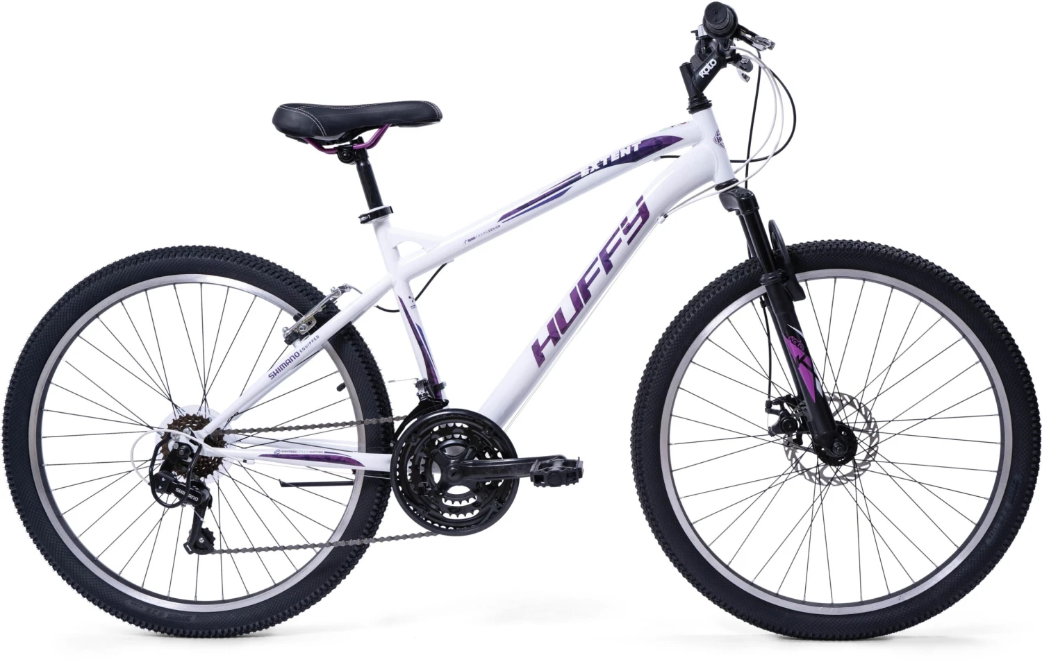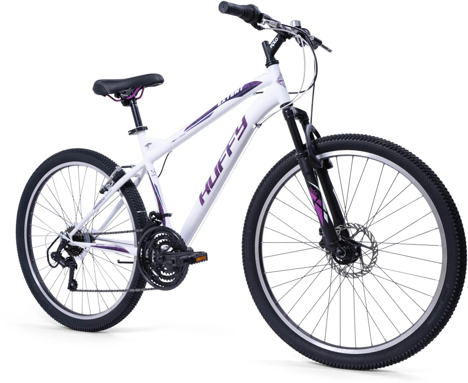 The padded saddle features an alloy quick-release seat clamp to make it easy to adjust the seat height for the right fit. This bike takes you anywhere, through trails or around town! Some days you have a destination – other days you just want to ride. Either way, the Huffy Extent bike delivers!