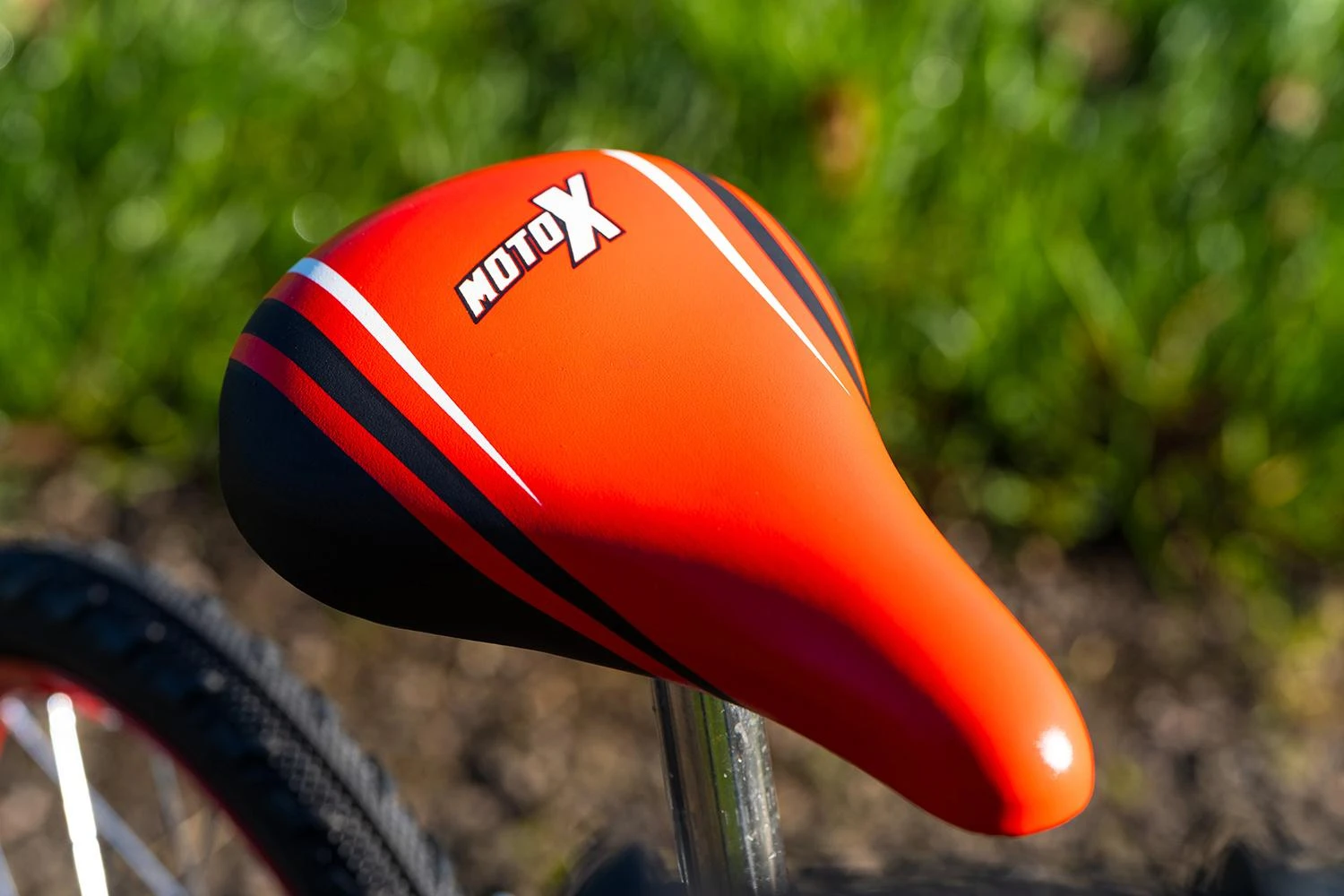 Moto X Bike Key Features: adjustable saddle and handlebars – adapt as your child grows, BMX Inspired styling for the budding racer, colourful graphics – Moto X styling stands out from the crowd, full caliper brakes – for easy, safe stopping, stabilisers included – ideal for learning, and easy to remove once skills improve.