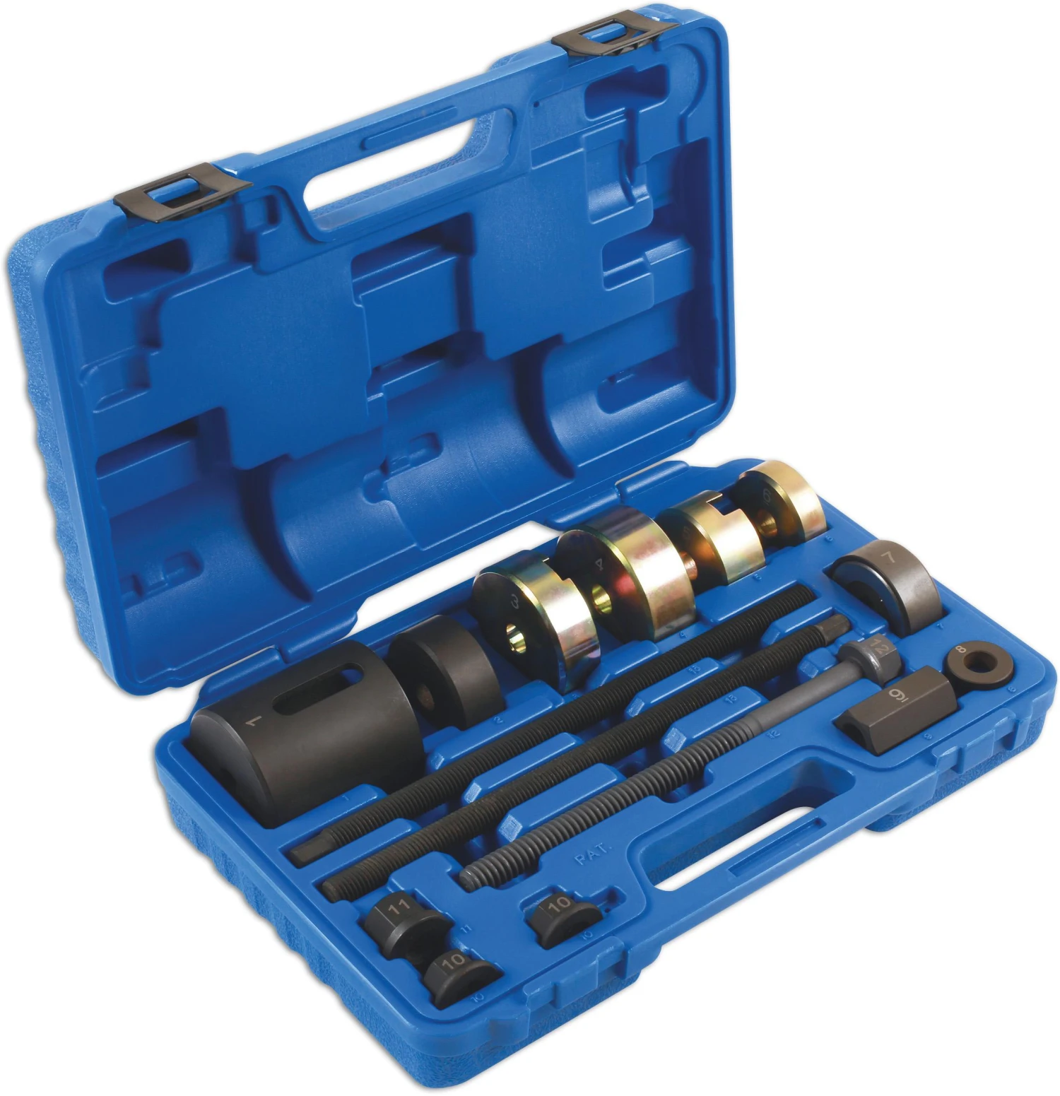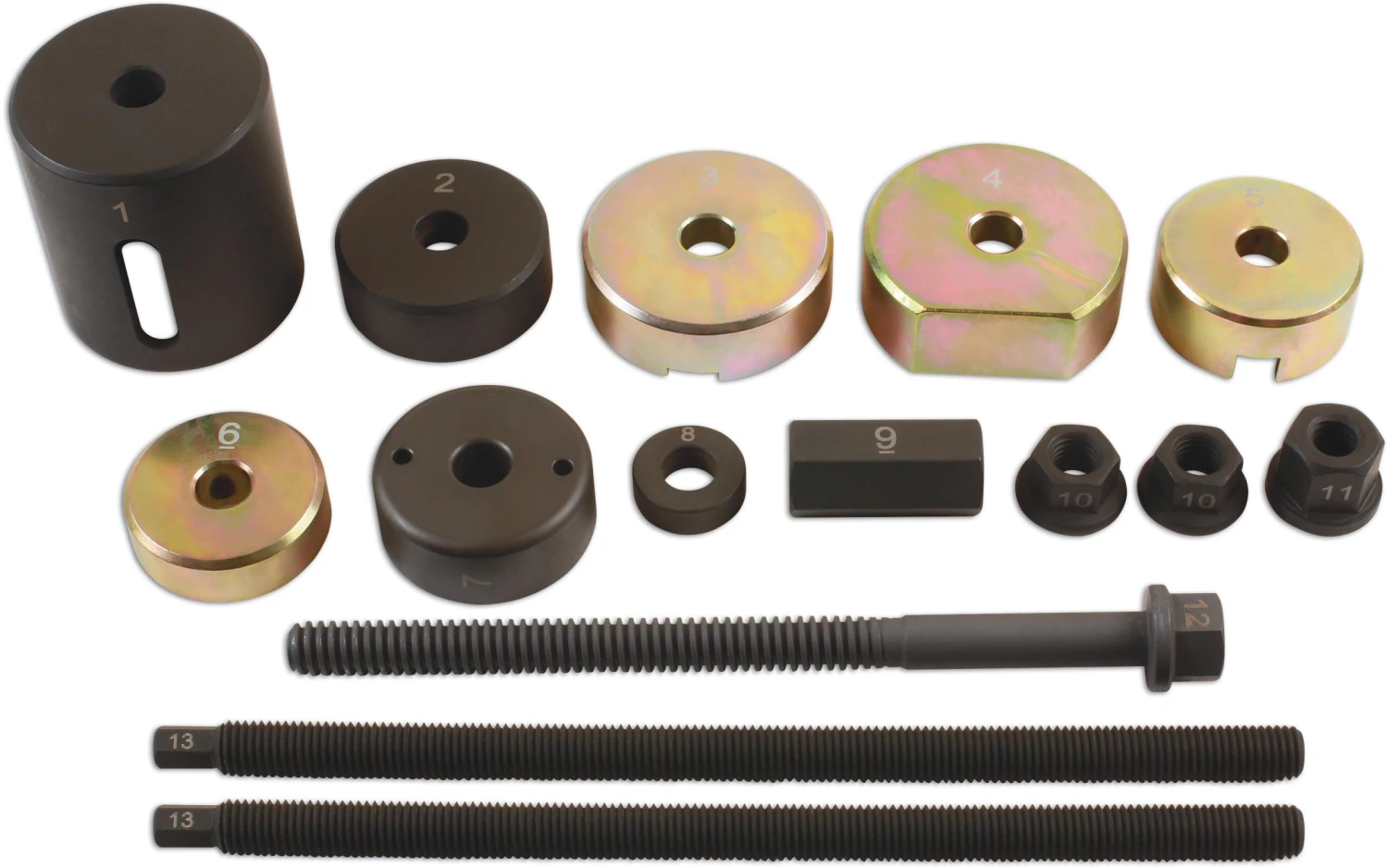 Part of a range of vehicle specific tools, for the removal and fitting of bushes and ball joints, without having to remove suspension legs, subframes, wishbones, trailing arms etc from the vehicle. Designed to be used in-situ, although many can also be used in a workshop press if circumstances require.