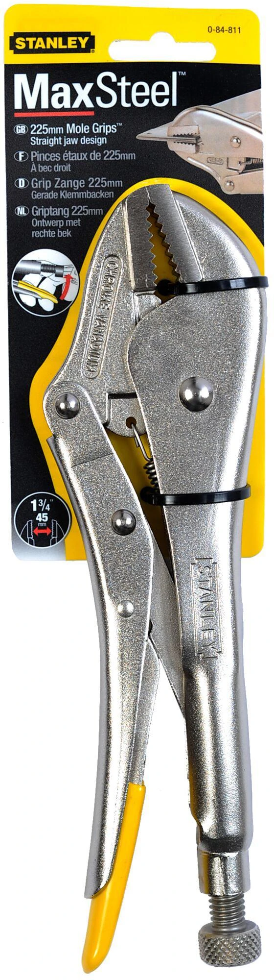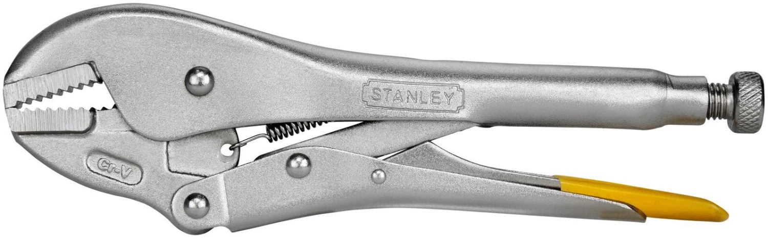 The Stanley Straight Jaw Plier with heavy-duty jaws allow for maximum contact on all work shapes flat or square, great for gripping awkward shapes such as pipes and hexagonal nuts. The pliers can be used as a hand vice, adjustable clamp or pliers. It is very popular in welding and other metal work.