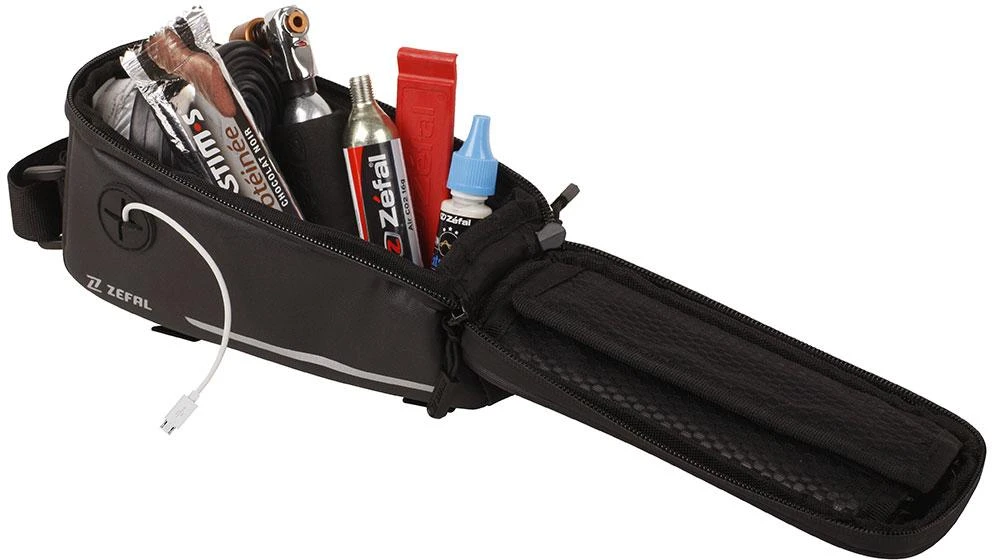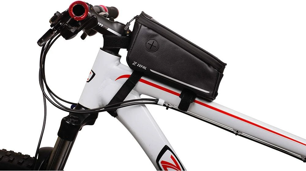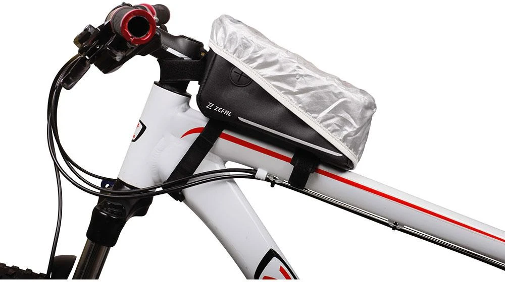 2 in 1, the Console Pack is a top-tube bag with an integrated compartment for smartphones. Easy to install on the tube, it has a zippered compartment to carry most accessories (repair kits, CO2 cartridges, energy gels, keys…). An extra strap is provided, allowing the bag to be mounted on all types of frames. Access to the touch screen allows you to look and record your data. The rain-cover guarantees protection during wet conditions.